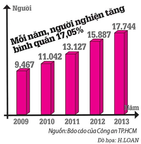 | Báo cáo của Công an TP.HCM nêu: “Qua thống kê chưa đầy đủ, TP hiện có 1.473 người nghiện, người quản lý sau cai nghiện bỏ địa phương đi đâu không rõ, các quận/huyện đã lập hồ sơ nhưng chưa quản lý được con người thực tế. Số người tái nghiện, người cai nghiện từ hai lần trở lên chiếm tỉ lệ 29,19% trong tổng số người nghiện ma túy”. Tại buổi làm việc với HĐND TP.HCM sáng 28-5, ông Huỳnh Thanh Khiết, Phó Giám đốc Sở LĐ-TB&XH TP.HCM, nhìn nhận người sau cai nghiện bị hạn chế về việc làm do nhiều lý do như sức khỏe không đáp ứng được nhu cầu, doanh nghiệp kỳ thị… Từ đó ông đề xuất nên hỗ trợ cho đối tượng này vay vốn để tự tạo công ăn việc làm ở nhà như sửa xe, cắt tóc… để họ quyết tâm đoạn tuyệt ma túy. Tuy nhiên, cũng có đại biểu lo ngại không khả thi do khó thu hồi vốn vay. |
