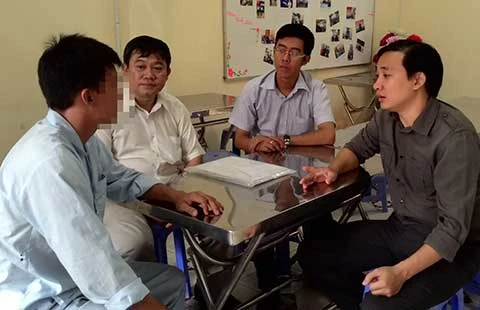 Cán bộ phường 18, quận 4 thăm hỏi, động viên người tự nguyện vào Trung tâm Tư vấn và cai nghiện ma túy cắt cơn, giải độc. Ảnh: HL