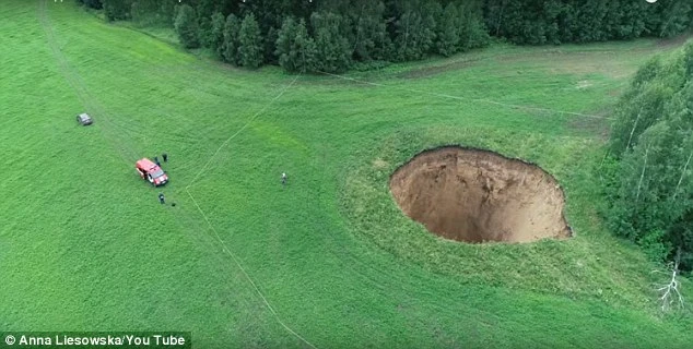 Dân làng tình cờ phát hiện ra cái hố khủng khiếp này khi đang đi hái nấm. Mặc dù không có ai bị thương nhưng trẻ em và dân làng cảm thấy như đang gặp ác mộng khi nghĩ tới viễn cảnh hố tử thần khổng lồ có thể nuốt chửng những ngôi nhà của họ trong đêm.