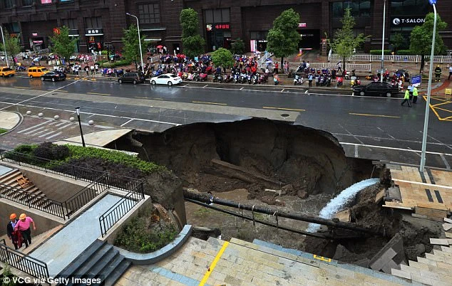 Theo Daily Mail, vụ việc xảy ra tại TP Nam Thông, tỉnh Giang Tô, Trung Quốc hôm 10-6 sau khi trận mưa lớn trút xuống khu vực vài ngày qua.