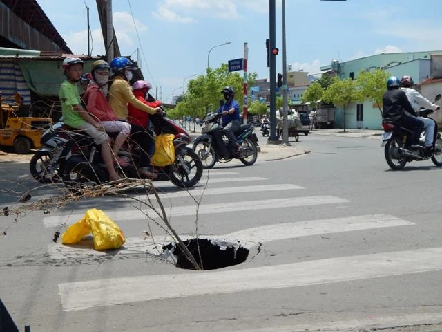 Theo ông Phạm Viết Cường (hành nghề chạy xe ôm tại khu vực này) cho biết, "hố tử thần" này mới bị vỡ to ra nên ông đã phải cắm một khúc cây để báo hiệu cho người tham gia giao thông biết. Sáng nay "hố tử thần" này chỉ là một đường trũng. Sau đó nhiều phương tiện chạy qua thì miệng hố bắt đầu bể rộng và tạo thành hố sâu.