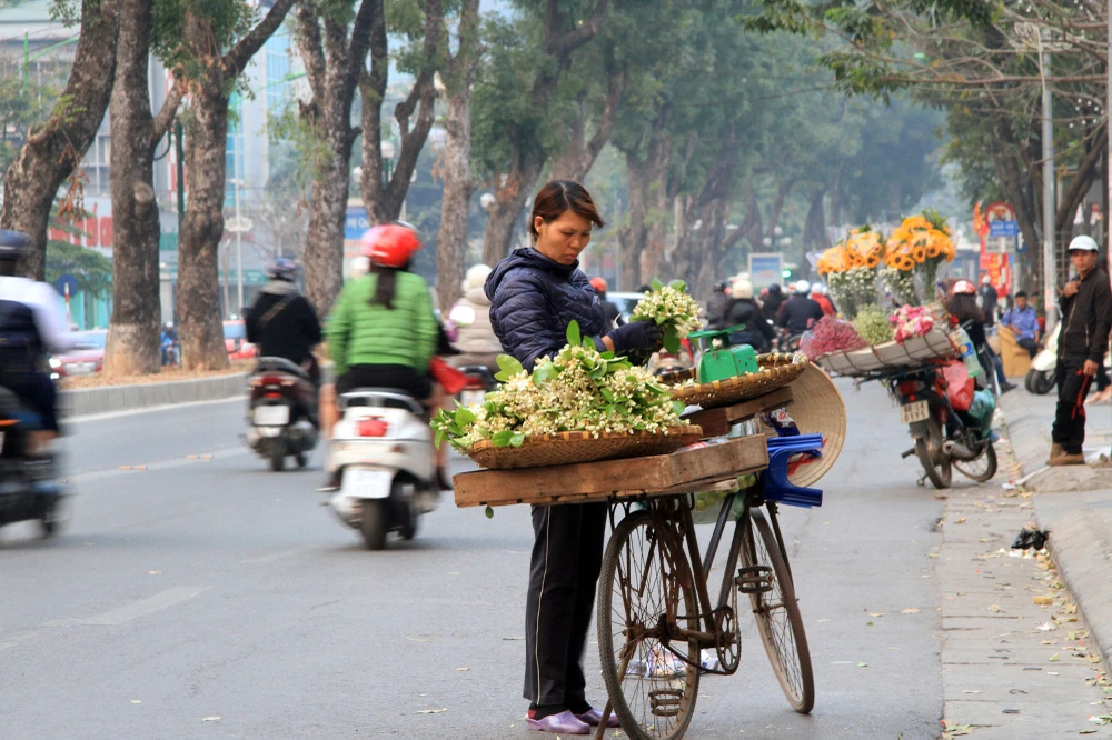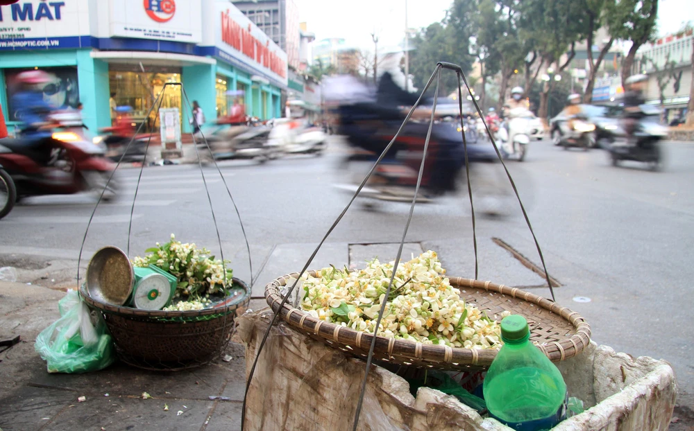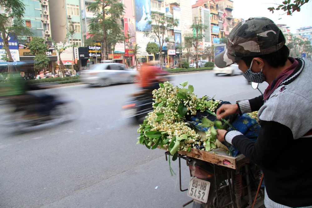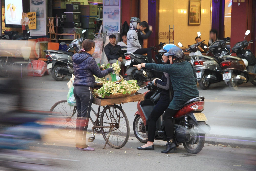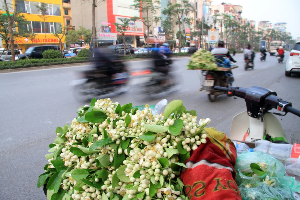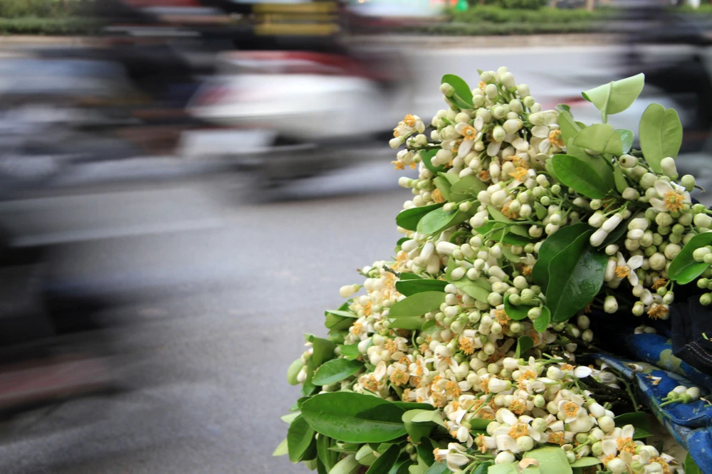 Hoa bưởi bán trên phố Hà Nội, đa phần xuất phát từ các làng ven Hà Nội.
