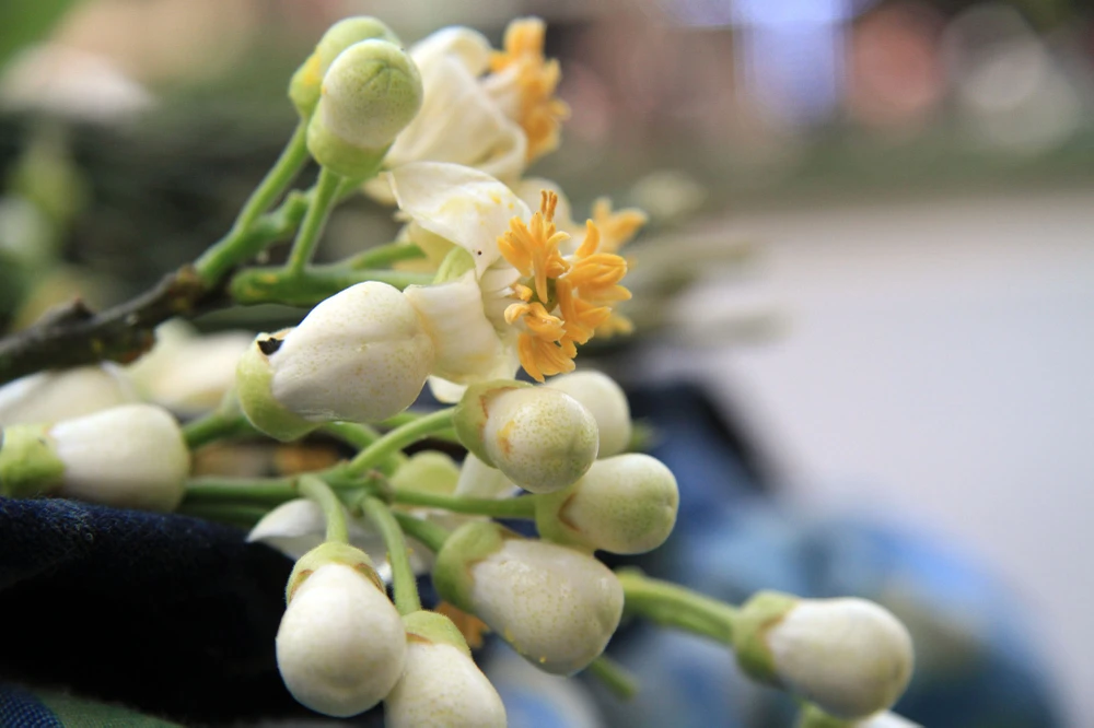 Vẻ đẹp tinh khôi... Người Hà Nội có thói quen mua hoa bưởi về đặt lên đĩa thắp hương cúng gia tiên, cắm trong lọ nhỏ, ướp trà, nấu chè hoặc gội đầu...