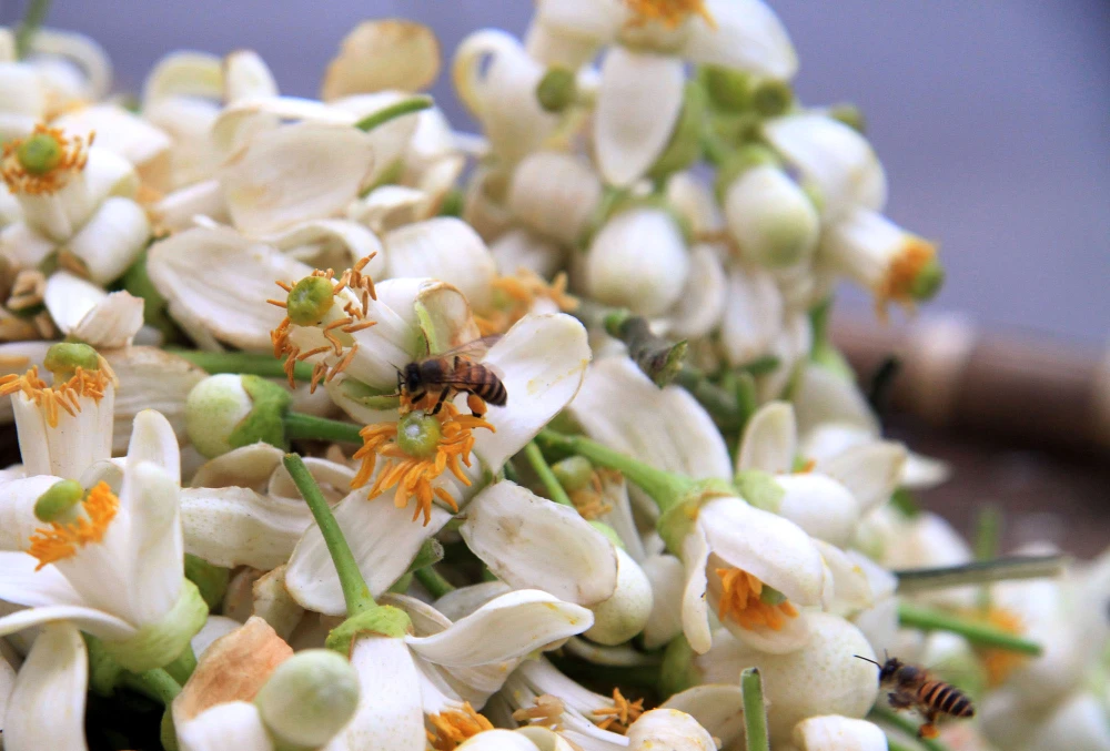 Mùi thơm quyến rũ, nông nàn của hoa bưởi thu hút những chú ong lấy mật.