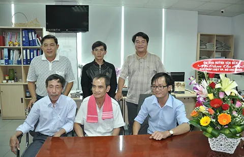 Ông Huỳnh Văn Nén và gia đình tại tòa soạn báo Pháp Luật TP.HCM chiều 4-11. Ảnh: DUY TÍNH