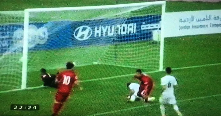 Hưng phấn sau bàn thắng, chỉ 5 phút sau, Việt Nam suýt chút nữa đã gia tăng khoảng cách sau tình huống Công Phượng có bóng trống trải rồi dứt điểm xoáy tuyệt đẹp trước vòng cấm Jordan. Thủ thành Amir Shafi đã bất lực nhưng xà ngang lại cứu thua cho Jordan.