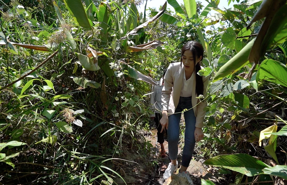 Hoa hậu Đỗ Thị Hà trèo đèo, lội suối để thực hiện dự án. Ảnh: SV