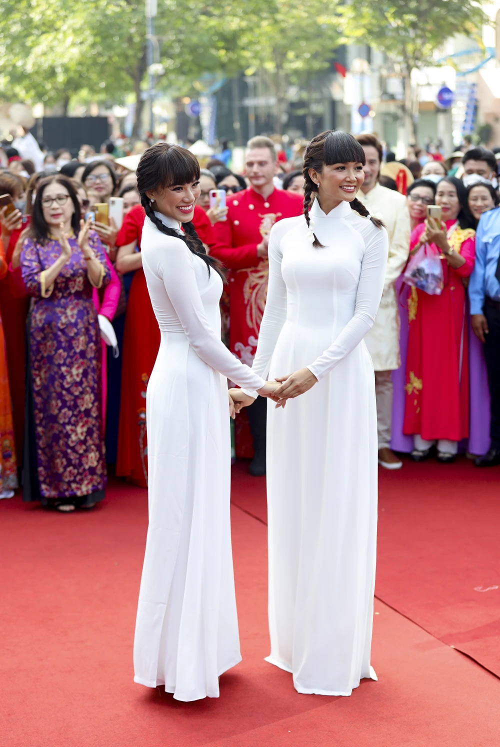Tại lễ diễu hành, H’Hen Niê, Kim Duyên xuất hiện trong bộ áo dài trắng nền nã.