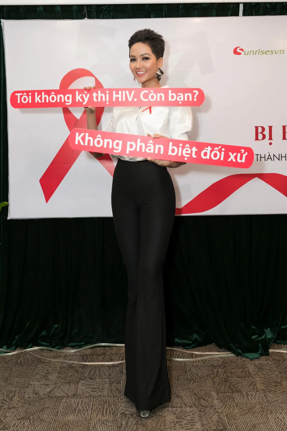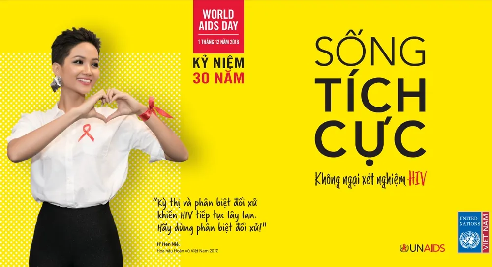 Hôm nay, 1-12, Hoa hậu H’Hen Niê xuất hiện trước công chúng với một dải băng đỏ. Cô cũng được xuất hiện trên poster trong chiến dịch toàn cầu của UNAIDS (Chương trình Phối hợp của Liên Hiệp Quốc về HIV/AIDS).