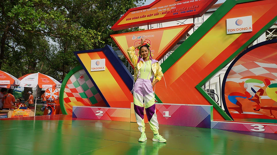 Vốn thích thử nghiệm nhiều phong cách khác nhau, H’Hen Niê không ngại tự làm khó bản thân, cùng stylist nghiên cứu những phong cách độc đáo, mang tinh thần thể thao để đồng hành cùng cùng cuộc đua xe đạp tranh cúp truyền hình HTV 2021.
