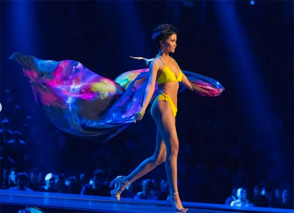 10 cô gái xinh đẹp nhất bước vào vòng thi áo tắm khoe dáng trong những bộ đồ bơi sắc màu. H'Hen Niê trình diễn sau đại diện Nam Phi với những sải bước tự tin, biểu cảm rạng rỡ. Hoa hậu Hoàn vũ Việt Nam sở hữu số đo ba vòng 83-60-97 cùng chiều cao 1,73 m, làn da ngăm khỏe khoắn. Cô cũng được nhận xét là một trong những thí sinh Việt có vóc dáng đẹp nhất đi thi quốc tế.