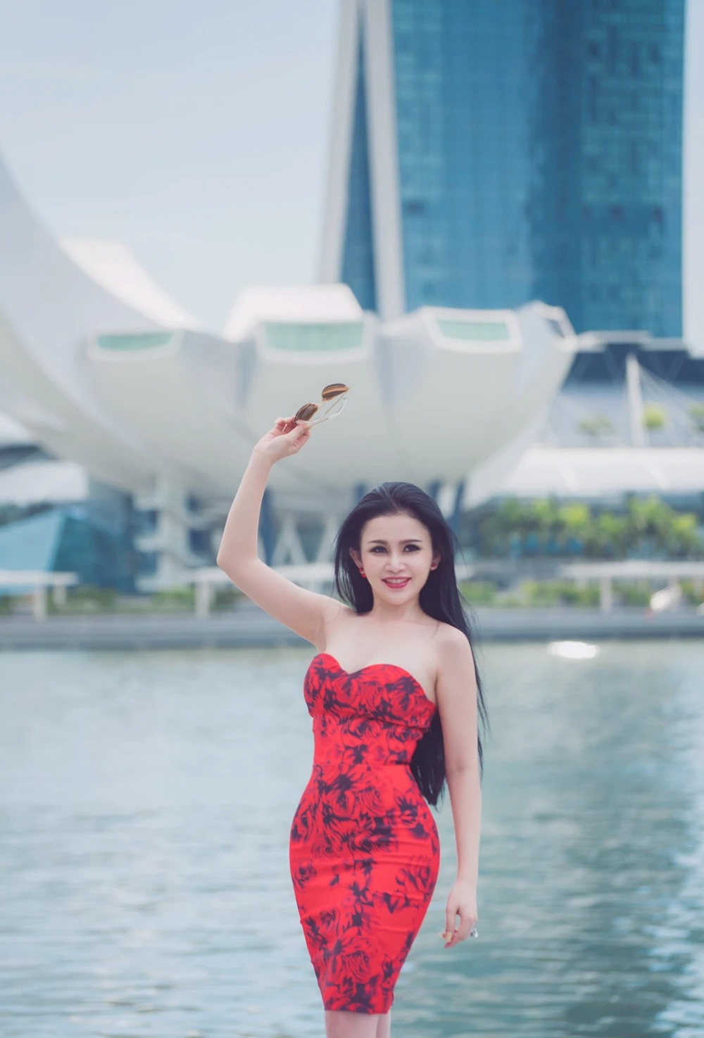 Hình ảnh hoa hậu Janny Thủy Trần khoe dáng ở Singapore: