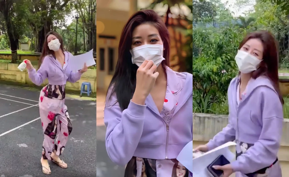 Những hình ảnh đầu tiên của Khánh Vân trong ngày đầu cách ly đã chính thức lộ diện. Trong bộ quần áo rộng rãi thoải mái, Khánh Vân chia sẻ niềm vui hạnh phúc khi được trở về quê nhà.