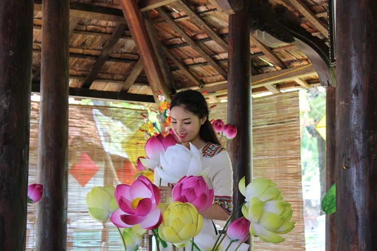 Những bông hoa sen duyên dáng làm bằng giấy thủ công