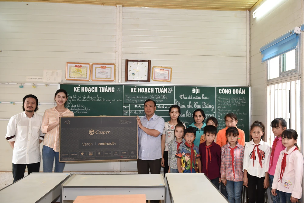 Trước đó, Hoa hậu Lương Thùy Linh cũng đã đến thăm và tặng những vật dụng thiết yếu: tivi, bàn học, tủ… cho Trung tâm bảo trợ Xã hội tỉnh Cao Bằng.