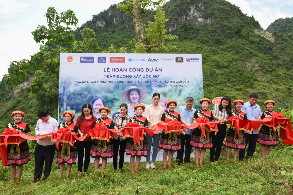 Hoa hậu Lương Thùy Linh đã cùng lãnh đạo địa phương và ban tổ chức cuộc thi Miss World Việt Nam trở lại Lũng Lìu làm lễ cắt băng khánh thành dự án Đắp đường xây ước mơ.