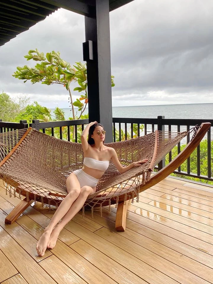 Hoa Hậu Lương Thùy Linh khoe body gợi cảm, chân dài cực phẩm tại resort 5 sao Phú Quốc.