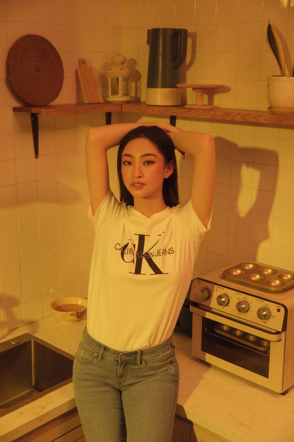 Với thân hình mảnh mai nhưng đầy năng lượng, Lương Thùy Linh tự tin khoe trọn đường line cơ thể nuột nà của mình trong từng shoot hình.