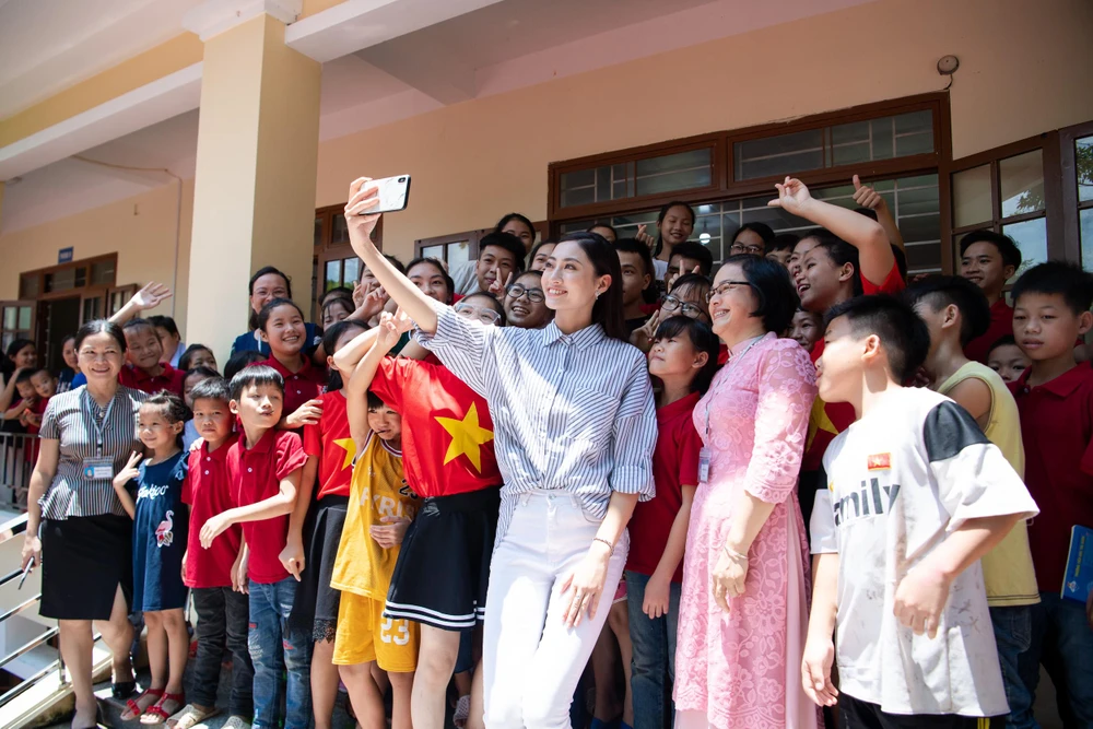 Sau những giao lưu, chia sẻ và ôn lại kỷ niệm đầy xúc động, tân hoa hậu đã thực hiện hành động tri ân thiết thực nhất gửi tới các thầy cô và nhà trường khi trao 18 suất học bổng cho những em học sinh đạt thành tích giỏi của trường và chín suất học bổng trao tặng những bạn học sinh nghèo vượt khó.