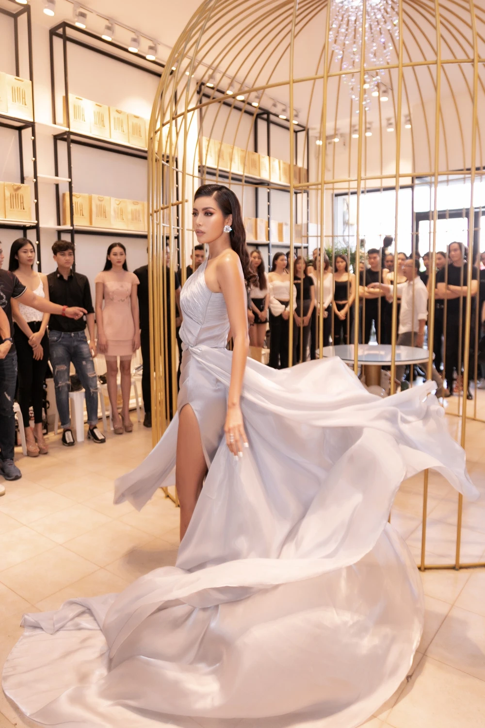 Tại buổi tuyển lựa người mẫu, Minh Tú chọn một chiếc váy dạ hội màu xám tôn lên những đường cong gợi cảm và làn da nâu khỏe khoắn quen thuộc. Trước khi bắt đầu công việc, Hoa hậu siêu quốc gia châu Á 2018 đã thị phạm bằng một đường catwalk cơ bản khiến đông đảo các người mẫu trẻ đến tham dự buổi casting vỗ tay thán phục.