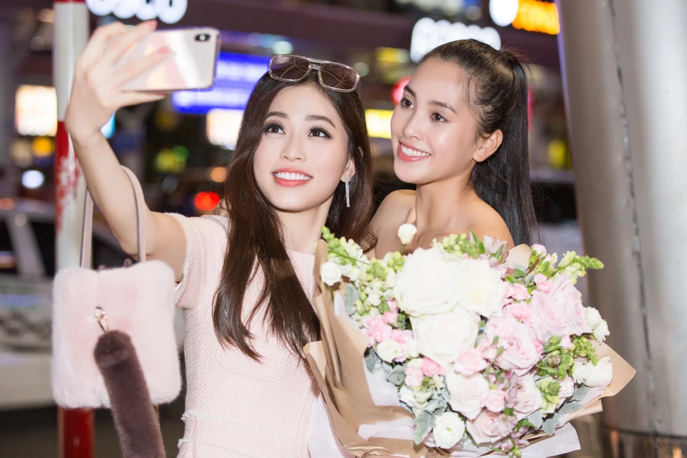 Hoa hậu Mỹ Linh, á hậu Phương Nga ra sân bay đón Tiểu Vy