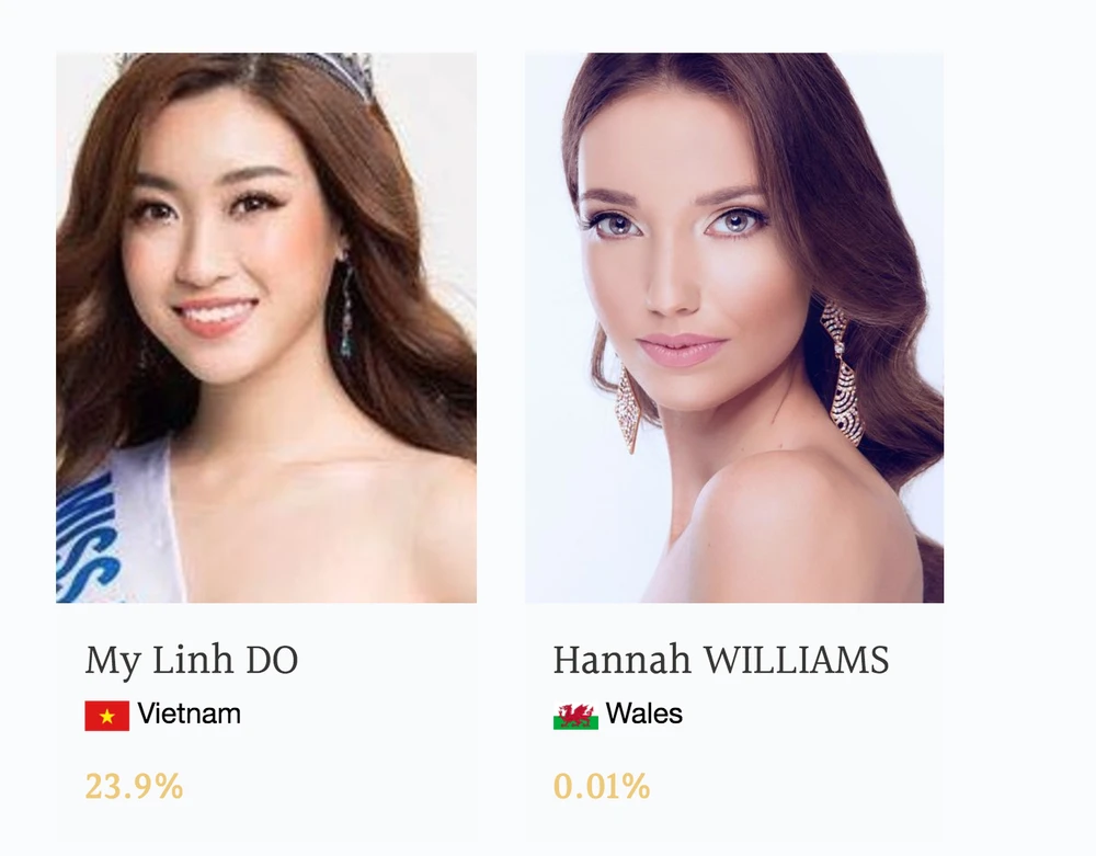 Hiện tại đại diện Việt Nam đứng thứ 1 với 23,9% lượt bình chọn, ngay sau là Nepal với 23,25% và Nga với 21,52%.