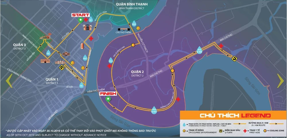 Bản đồ đường chạy cự ly 8 km diễn ra ngày 8-12 tại TP.HCM.