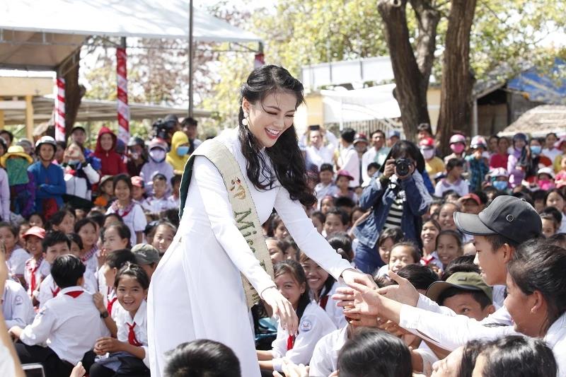 Hoa hậu Phương Khánh tặng quà cho các em nhỏ