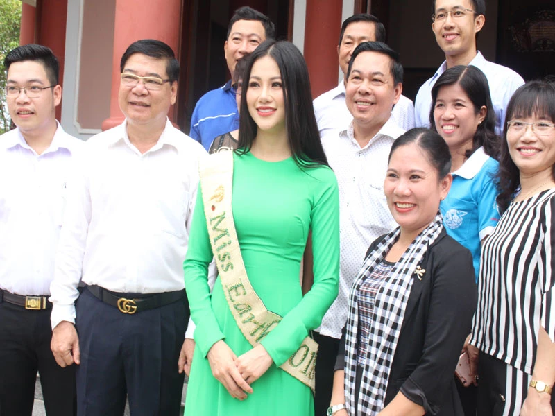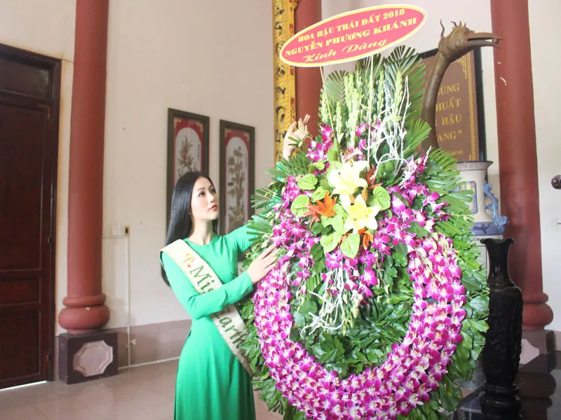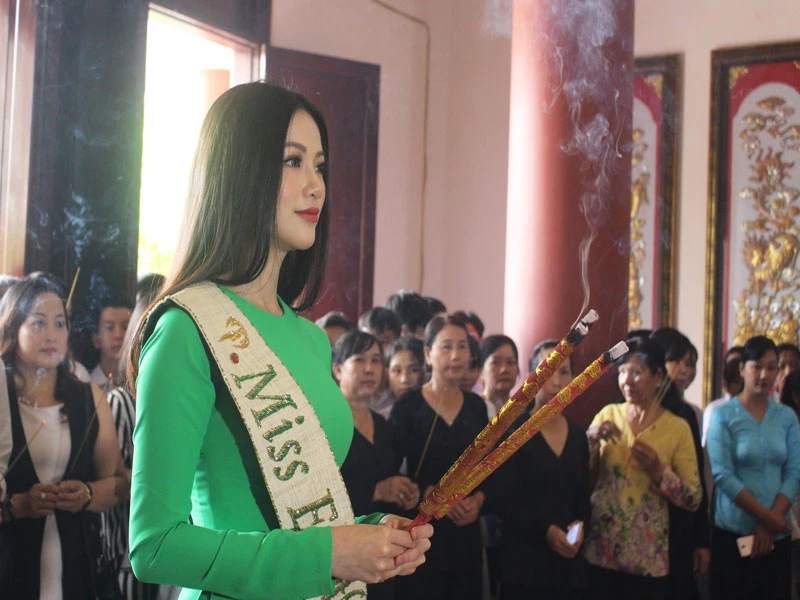 Hoa hậu Phương Khánh đến thắp hương tại đền thờ nữ tướng Nguyễn Thị Định ở Bến Tre.