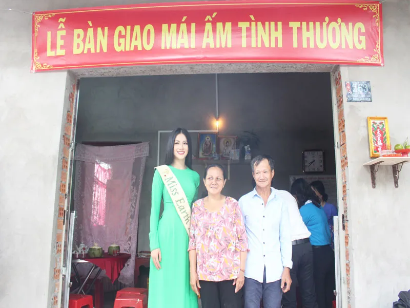 Sáng cùng ngày, Hoa hậu Phương Khánh đã đến xã Mỹ Thạnh (huyện Giồng Trôm, Bến Tre) tham gia hoạt động trao nhà tình thương cho gia đình bà Trương Liên Anh (56 tuổi, ở ấp Căn Cứ, xã Mỹ Thạnh) là hộ nghèo ở xã Mỹ Thạnh.