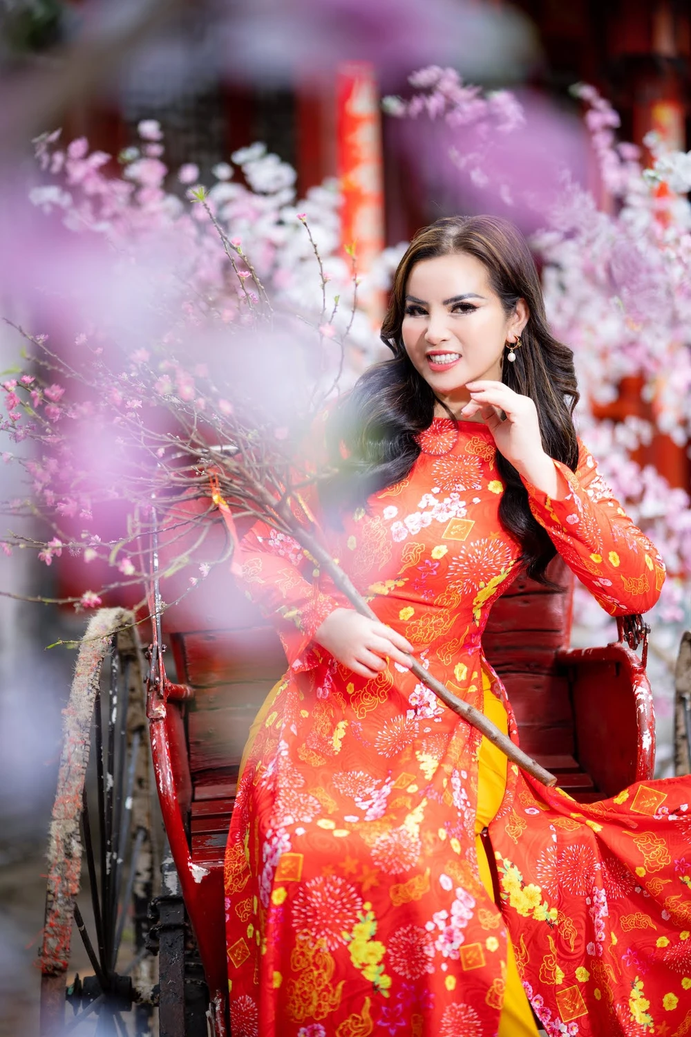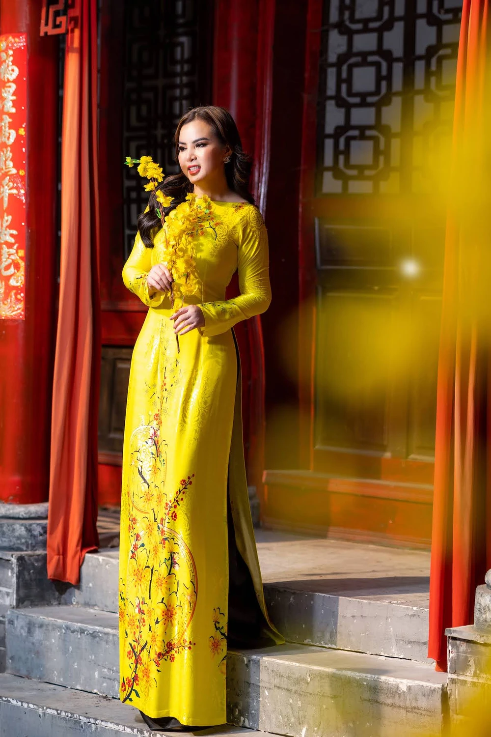 Hoa hậu vẫn kịp thực hiện một số hình ảnh ngập tràn sắc xuân. Ảnh: NVCC