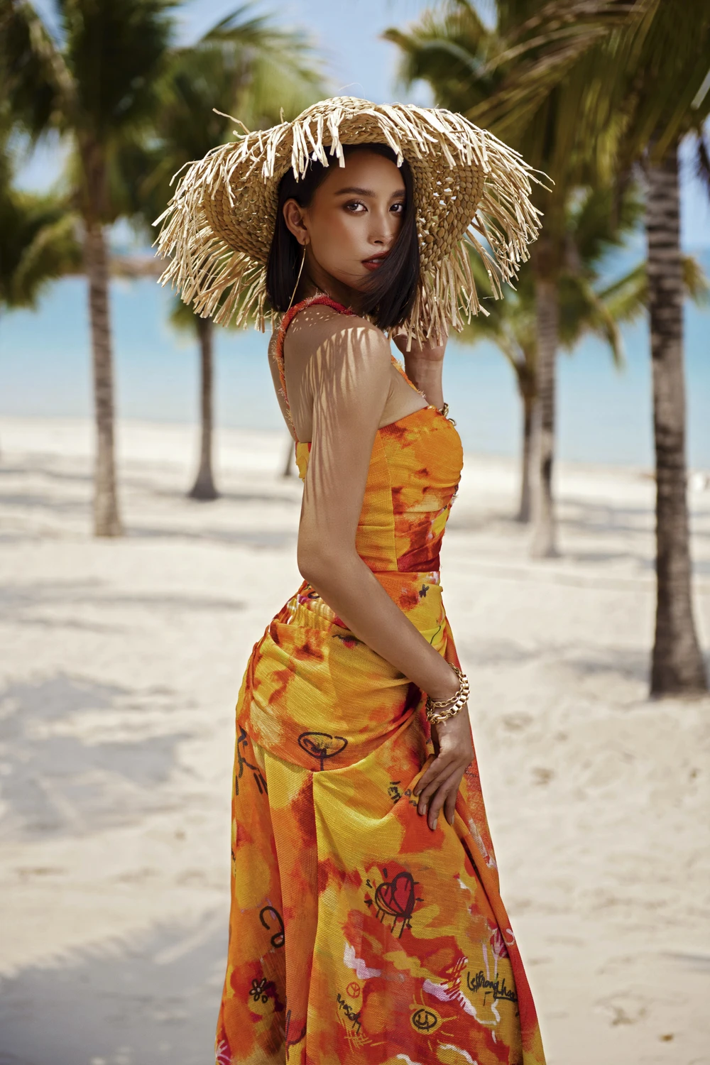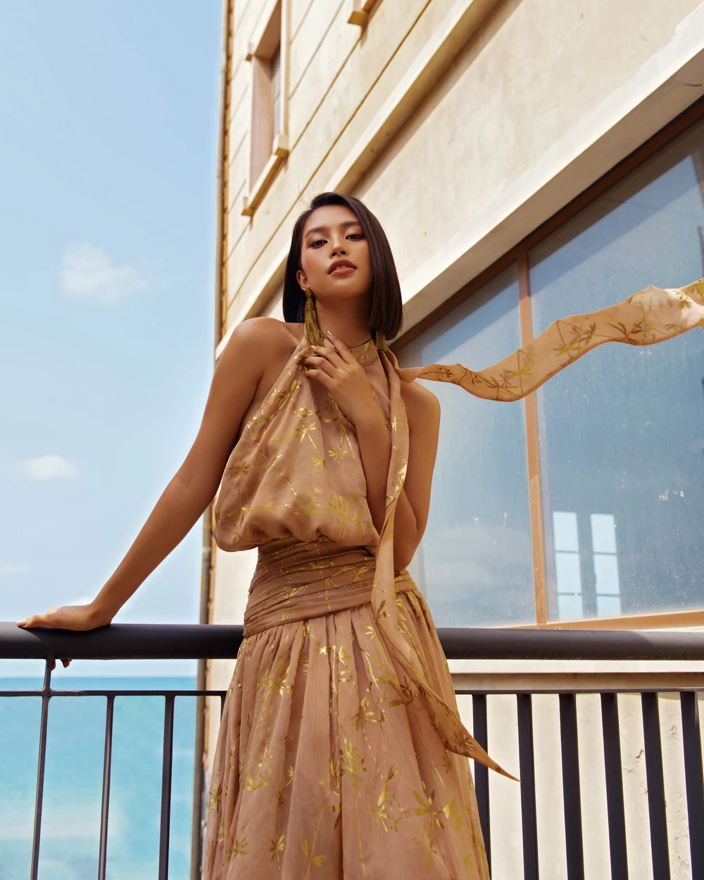 Bộ ảnh được thực hiện giữa thời tiết nắng nóng, nhưng Tiểu Vy vẫn duy trì được thần thái rạng ngời của mình trong suốt buổi chụp.