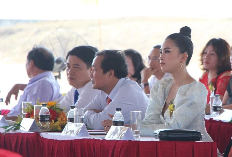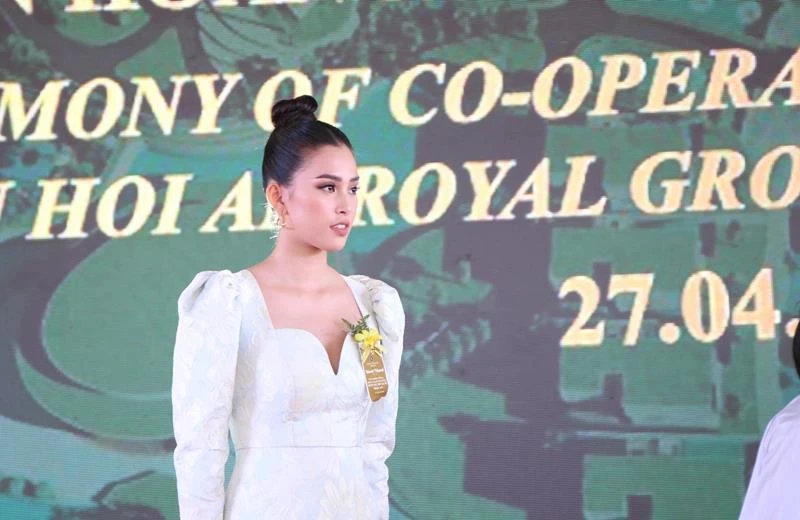 Hoa hậu Tiểu Vy rạng ngời trong lễ khởi công resort 1.900 tỉ. Ảnh: TV