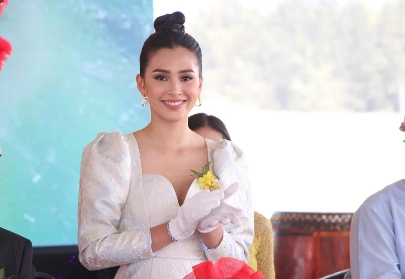 Hoa hậu Tiểu Vy thu hút mọi ánh nhìn tại lễ khởi công. Ảnh: TV
