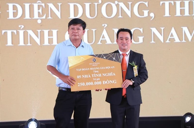 Dịp này, Tập đoàn Hoàng Gia Hội An cũng trao tặng năm căn nhà tình nghĩa với tổng trị giá 250 triệu đồng cho phường Điện Dương, thị xã Điện Bàn, Quảng Nam.