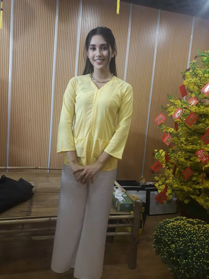 Đương kim Hoa hậu Việt Nam Trần Tiểu Vy, hoa hậu Đỗ Mỹ Linh, á hậu Thúy An, á hậu Diễm Trang và á khôi Thúy Vy đã mặc trang phục áo bà ba của người Miền Nam xưa ăn bánh mức, uống trà, hái lộc.