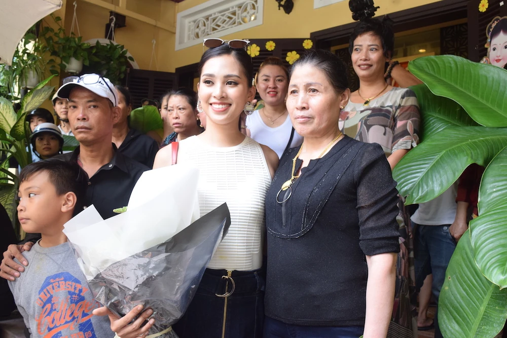 Người thân, hàng xóm tập trung trước nhà đón Tiểu Vy. Đây là dịp trở về có ý nghĩa đặc biệt đối với tân HHVN khi về với gia đình và người dân TP Hội An sau khi đăng quang.
