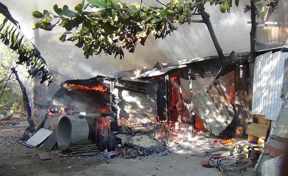 Vụ cháy không gây thiệt hại về người nhưng thiêu rụi 7 phòng trọ và 1 nhà dân cùng nhiều tài sản sinh hoạt.