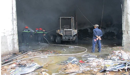 Lực lượng PCCC đã đưa xe cứu hỏa đến kịp thời tại công ty sản xuất bao bì.