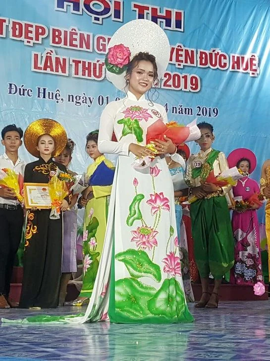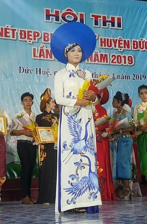 Thí sinh Bùi Thị Cẩm Hường đạt giải áo dài đẹp nhất. Ảnh: HỒNG MINH