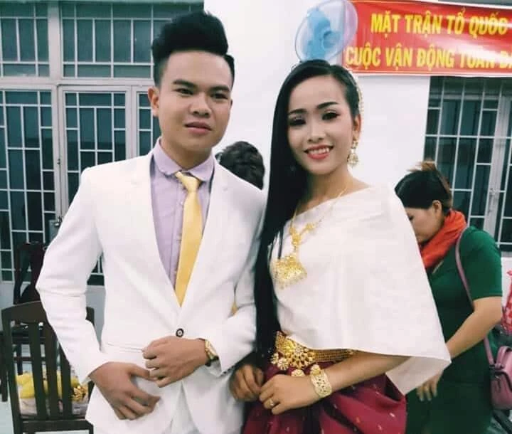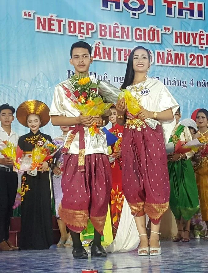Cặp thí sinh đạt giải nhì "Đôi nam nữ" là Phan Pich Sovan và Uyn Khun Thia. Cô gái Khun Thia cũng đạt giải gương mặt khả ái. Bộ trang phục truyền thống của cặp đôi này khá ấn tượng. Ảnh: HỒNG MINH