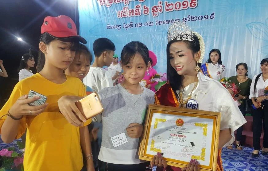 Khán giả xin chụp hình cùng Hoa khôi. Savy rất thân thiện và dễ mến. Ảnh: HỒNG MINH