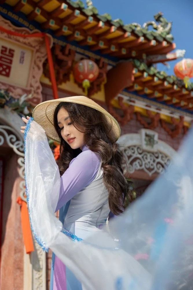 Đây là bộ ảnh áo dài mà Đoàn Hồng Trang tâm huyết thực hiện bởi cô muốn được giới thiệu đến Miss Global 2022 một vẻ đẹp thuần Việt nhất, đặc sắc nhất từ con người đến địa danh cùng tinh thần của hình ảnh.