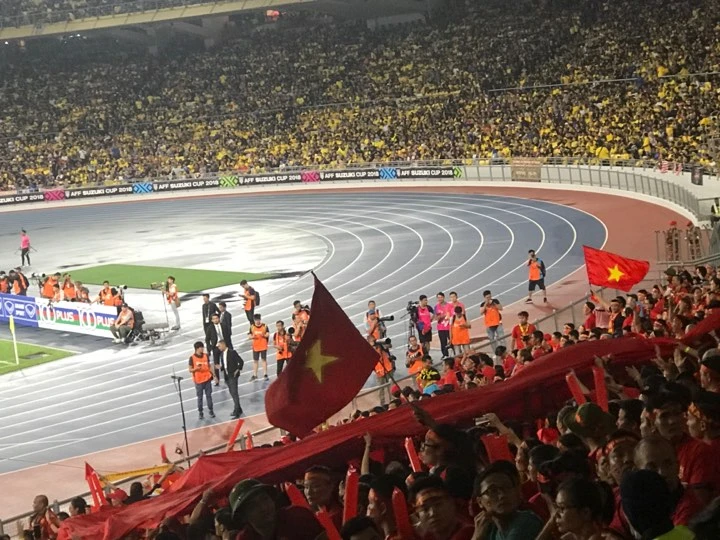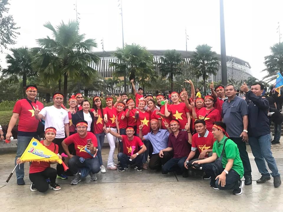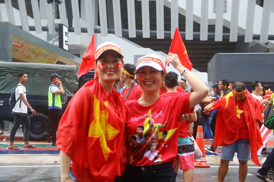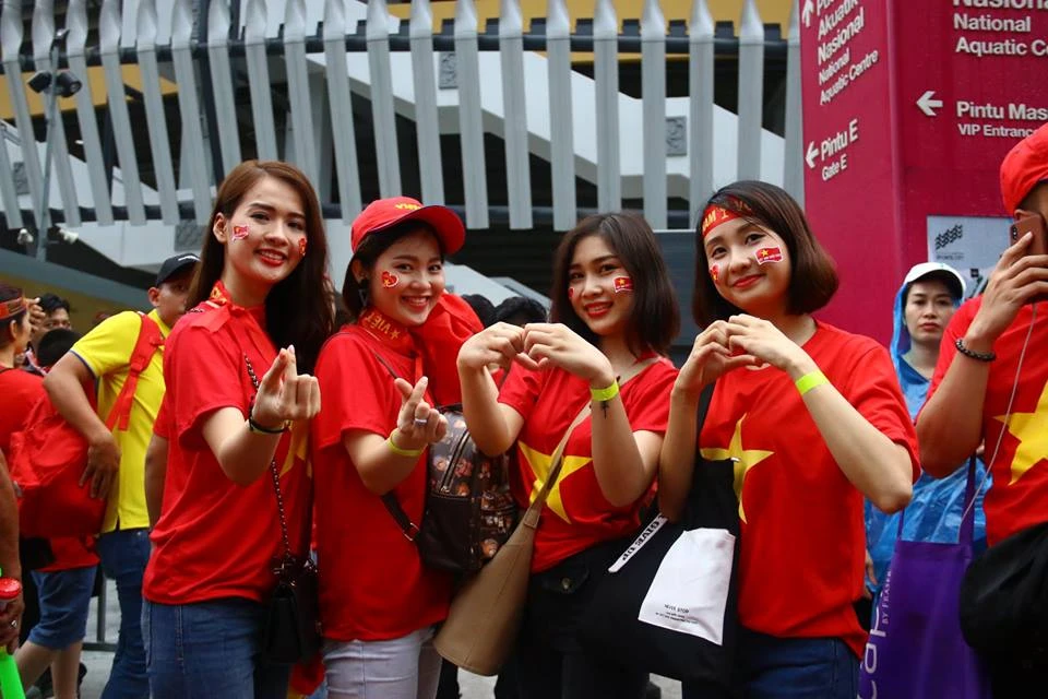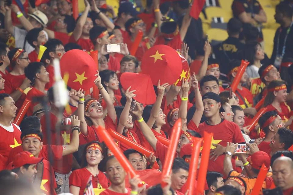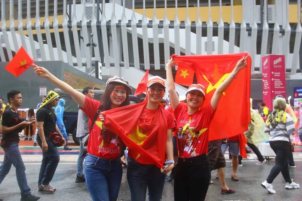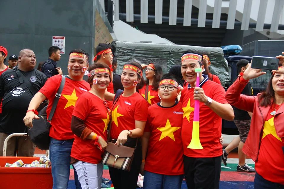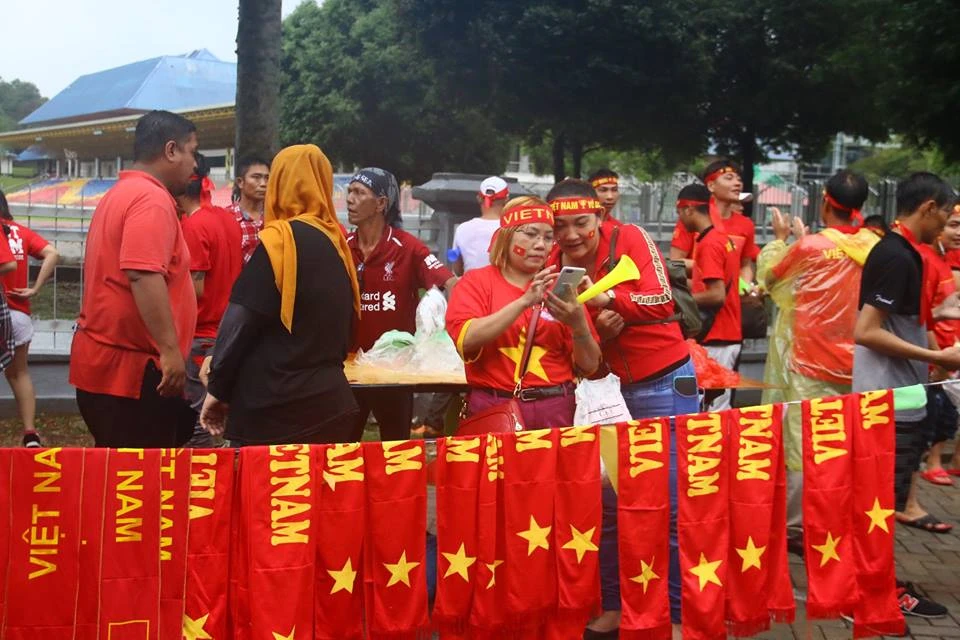 Các CĐV sẵn sàng nhuộm đỏ sân Bukit Jalil. ẢNH: TRÂM ANH.