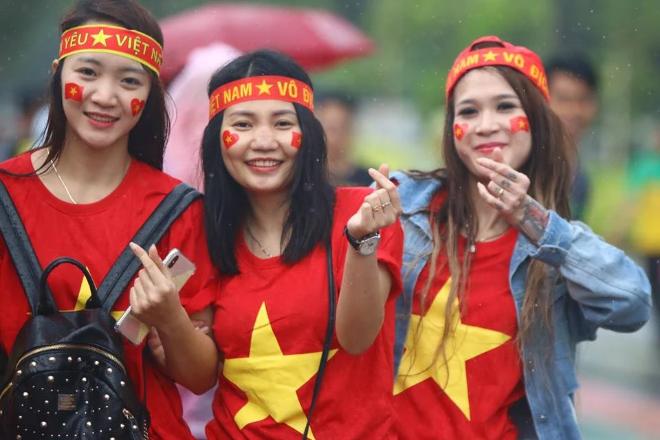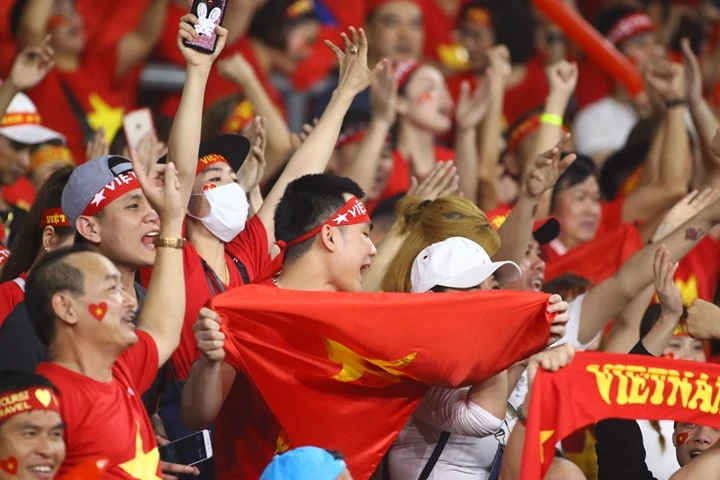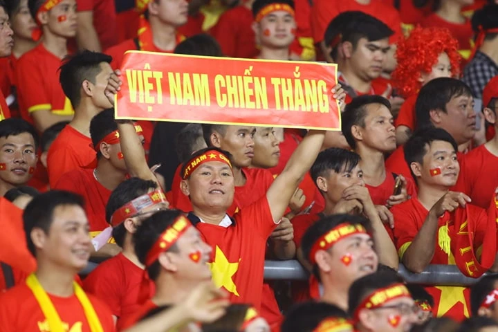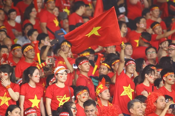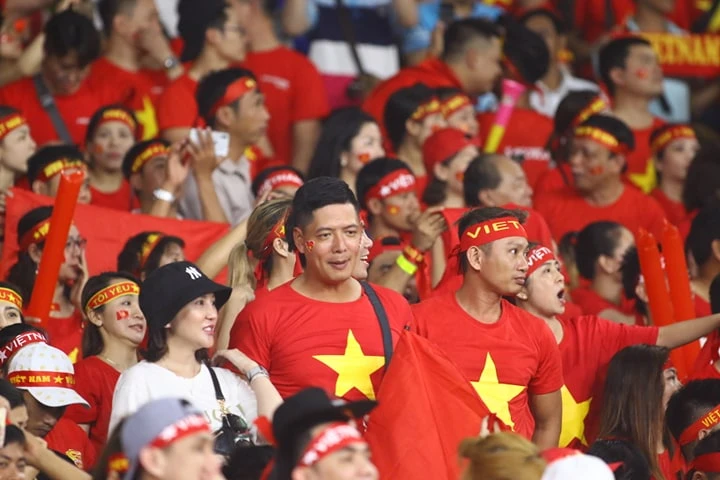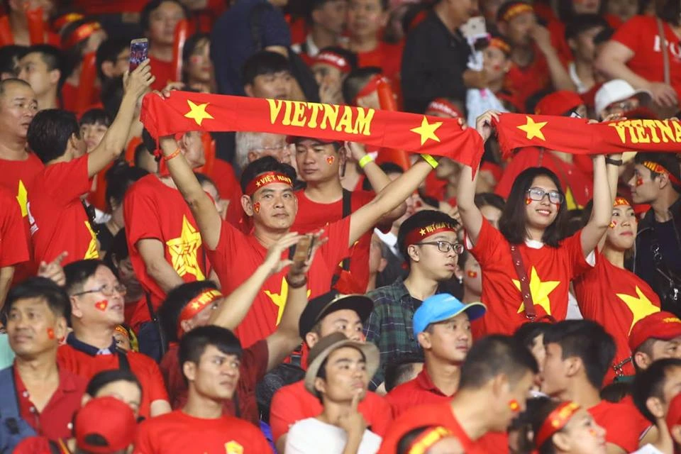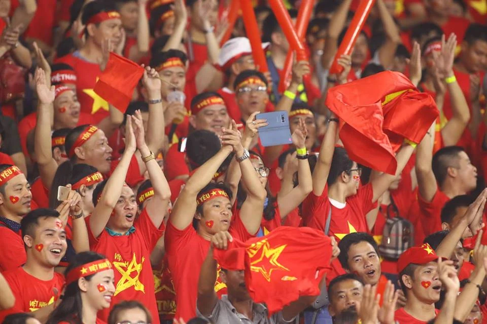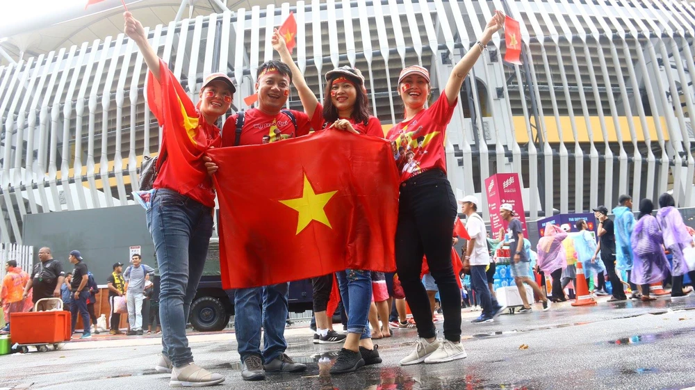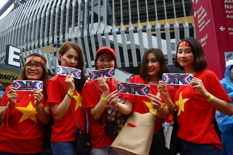 Các CĐV sẵn sàng nhuộm đỏ sân Bukit Jalil. ẢNH: TRÂM ANH.