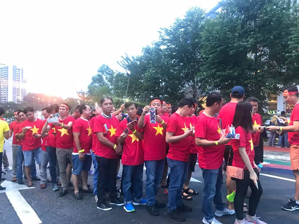 Các CĐV Việt Nam bên ngoài sân Bukit Jalil. ẢNH: CÔNG TUẤN.