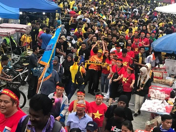 Các CĐV Malaysia bên ngoài sân Bukit Jalil.