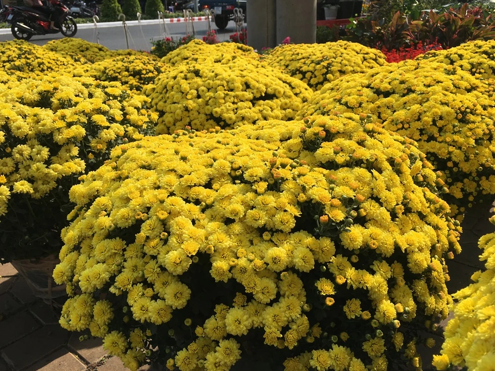 Cúc Đài Loan đã nở vàng ươm, có giá 250 ngàn đồng/cặp. Ảnh: NN