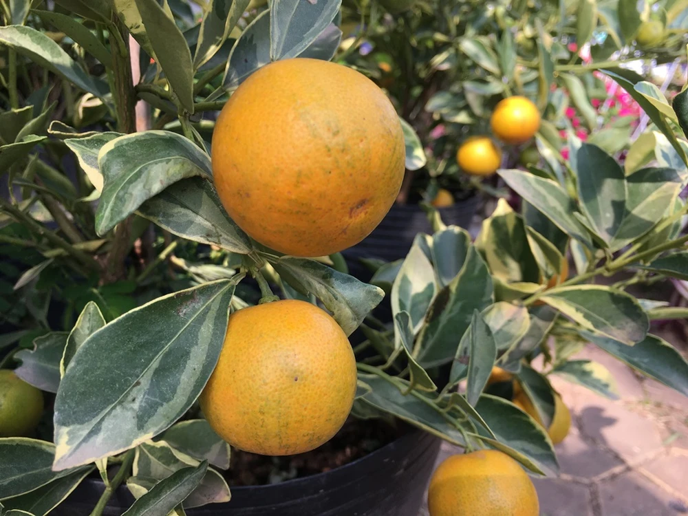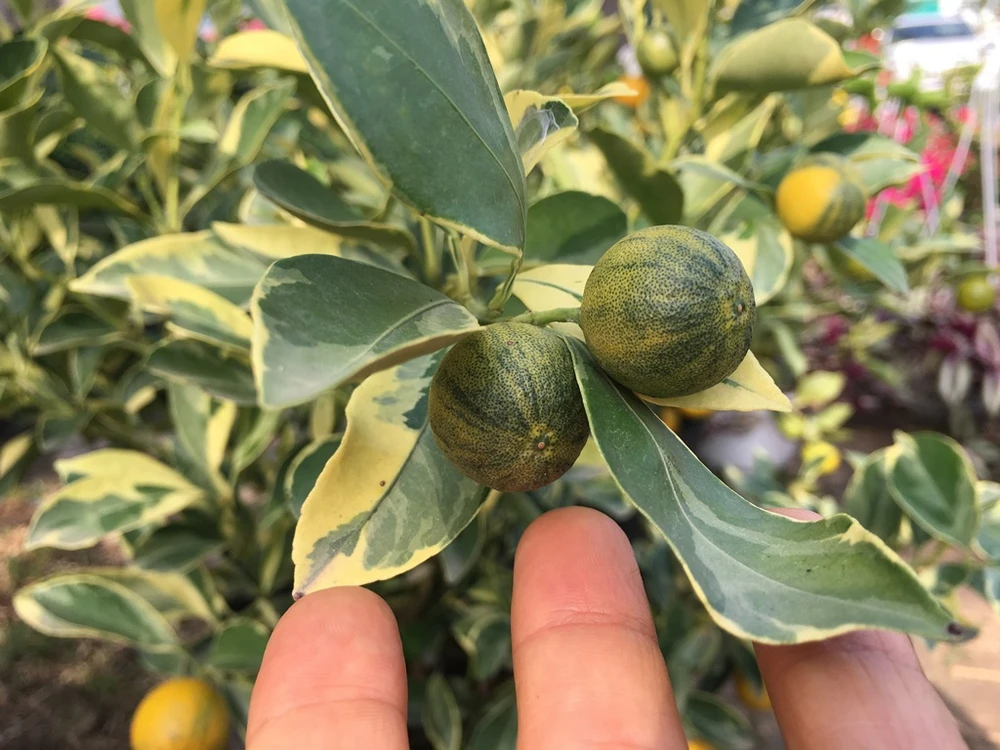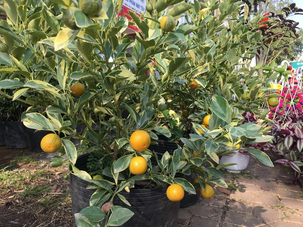 Tắc cẩm thạch - được chủ vườn cho biết được nhân giống từ một cây đột biến. Loại này có giá khá cao, được rao 600 ngàn đồng/cặp. Ảnh: NN