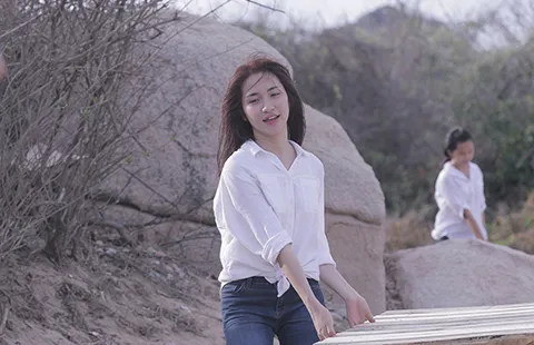 Hòa Minzy tự tay khiêng đạo cụ trong quá trình thực hiện phim ngắn ca nhạcVì Anh là của Em. Ảnh: Nhân vật cung cấp